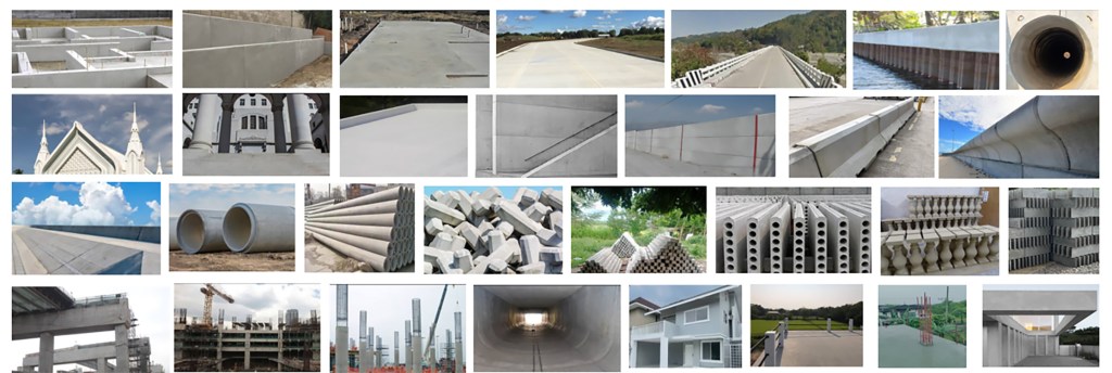 Shotcrete applications such as pools, basins, agriculture waterways, and rock walls, drainage pipes and septic tanks, sewers systems. Precast and prefabricated shapes, such as composite decks and thin cement sheets and panels, are also popular with architects and homeowners.